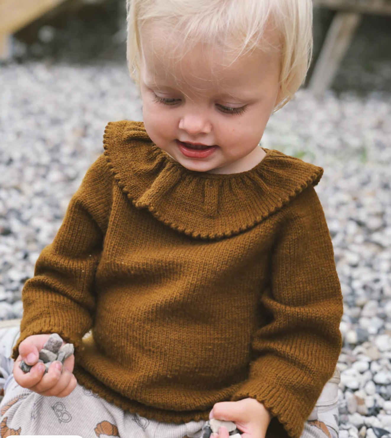 Dagmar’s Shirt is worked from the top down with raglan increases on the yoke. The collar is worked at the end from stitches that are picked up and knitted along the neck edge. All edges are finished with a lovely picot. The edges and the collar benefit from a light pressing with an iron on low heat after washing.
