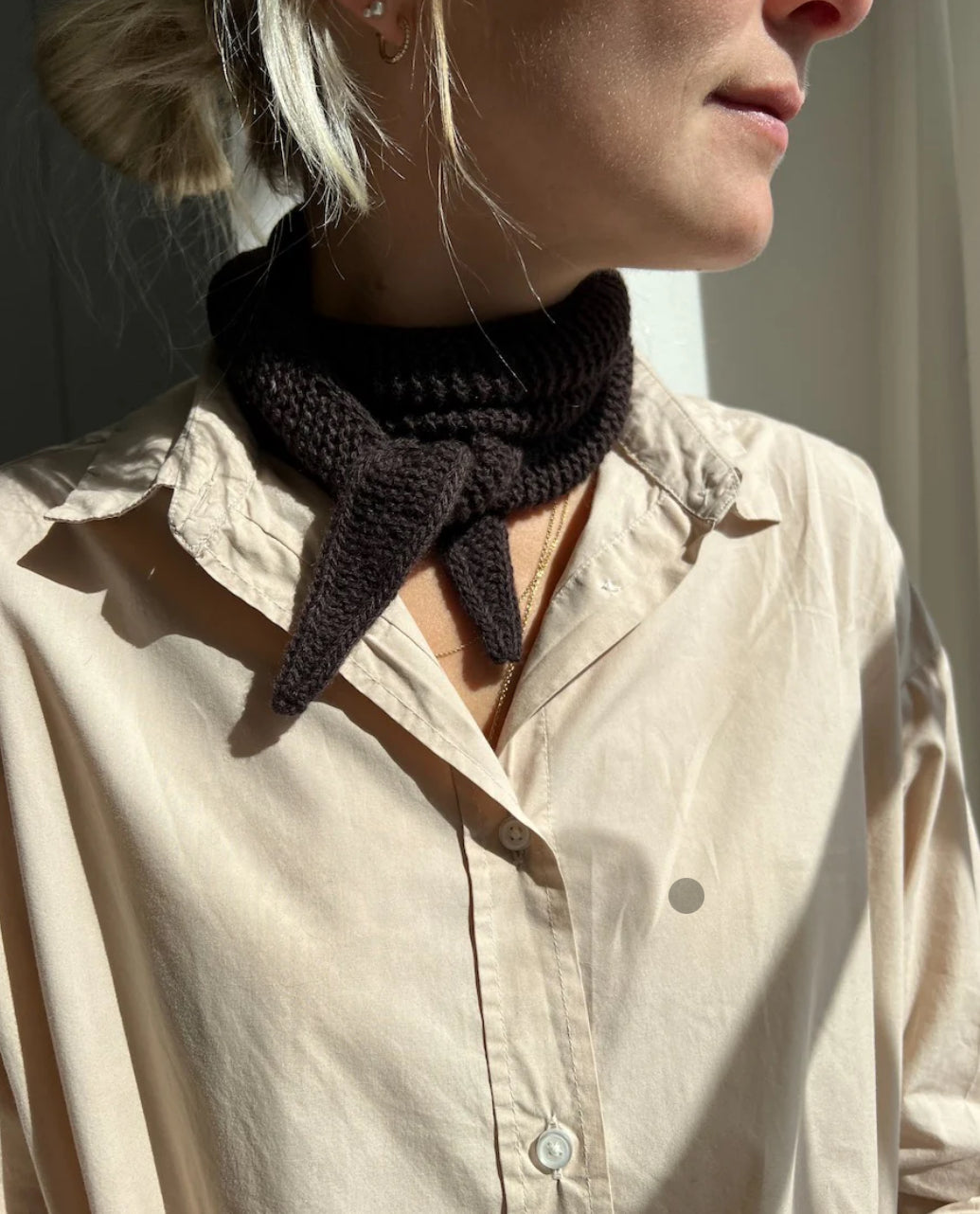 The brown Sophie Scarf is knitted in Cashmere Premium by Lang Yarns in the color 67.